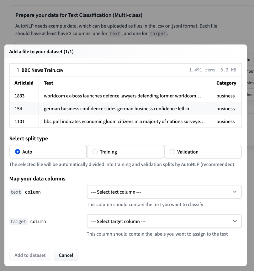 步驟 3:上傳訓練資料集並選擇自動拆分。