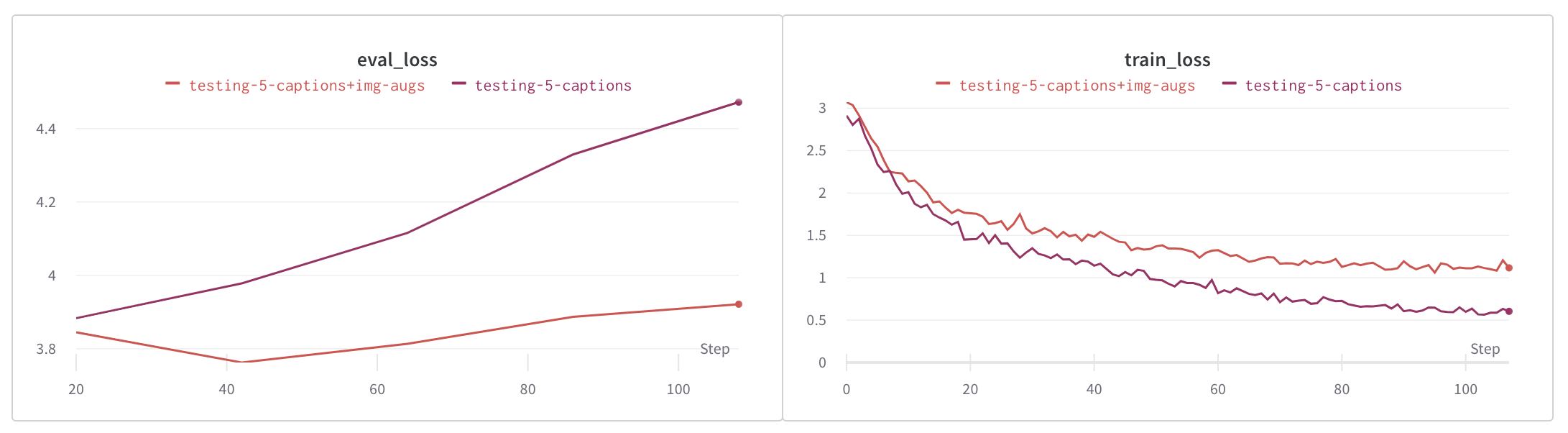 如下圖所示,影像增強顯著減少了過擬合,而文字和影像增強則進一步減少了過擬合。