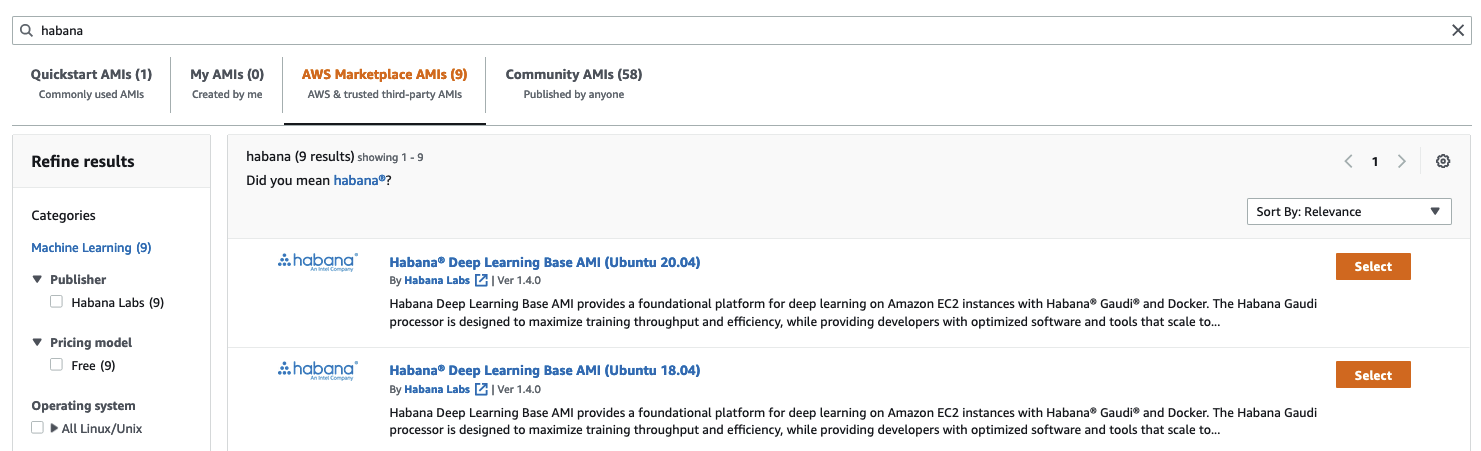 然後,我在亞馬遜雲市場中搜索 Habana AMI。