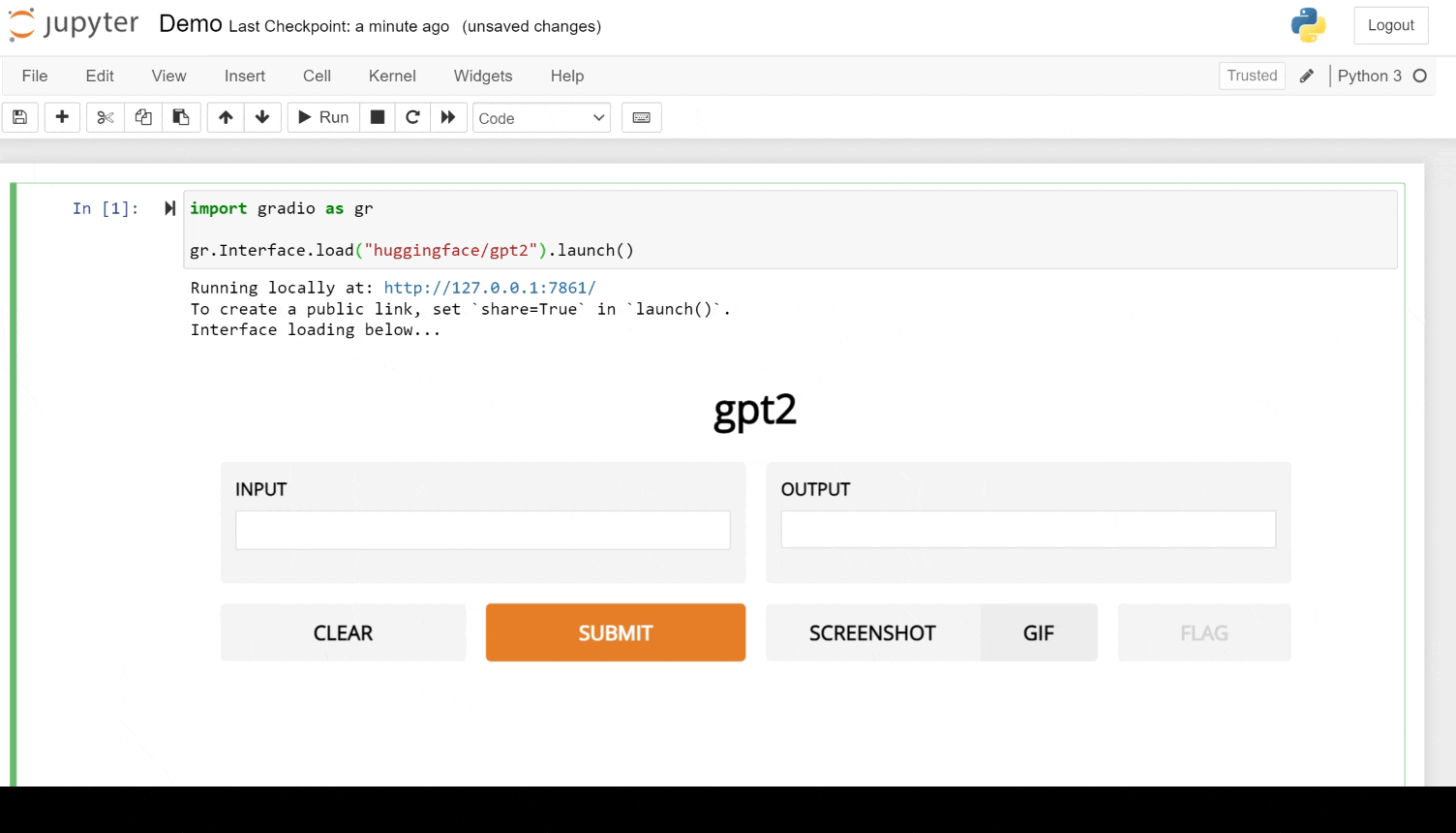 Gradio 庫讓機器學習開發者可以非常輕鬆地從機器學習模型建立演示和 GUI,並像分享 Google 文件連結一樣輕鬆地與協作者免費分享它們。現在,我們很高興地分享 Gradio 2.0 庫讓您只需 1 行程式碼即可載入和使用幾乎任何帶 GUI 的 Hugging Face 模型。這是一個例子