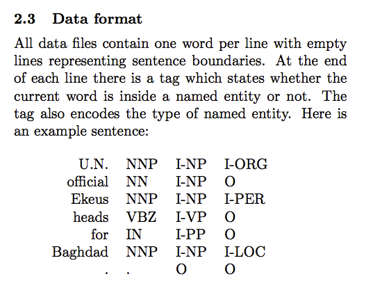 如前所述,世界語是一種高度規則的語言,單詞結尾通常決定了語法詞性。使用以 CoNLL-2003 格式標註的世界語詞性標註資料集(參見下面的示例),我們可以使用 transformers
