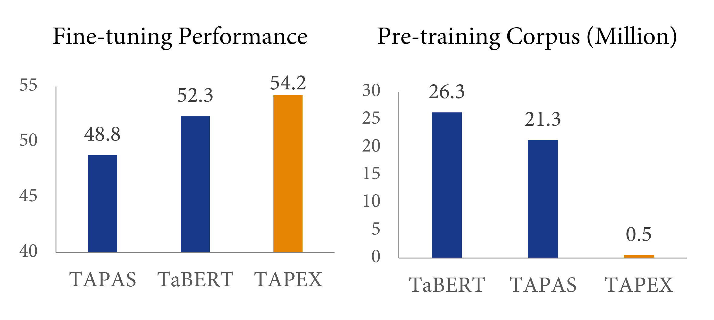 在《TAPEX: Table Pre-training via Learning a Neural SQL Executor》一文中,我們探索了在預訓練期間 使用合成數據作為真實資料的代理,並透過 TAPEX(Table Pre-training via Execution,透過執行進行表格預訓練) 作為一個例子來展示其強大之處。在 TAPEX 中,我們表明表格預訓練可以透過在合成語料庫上學習一個神經 SQL 執行器來實現。
