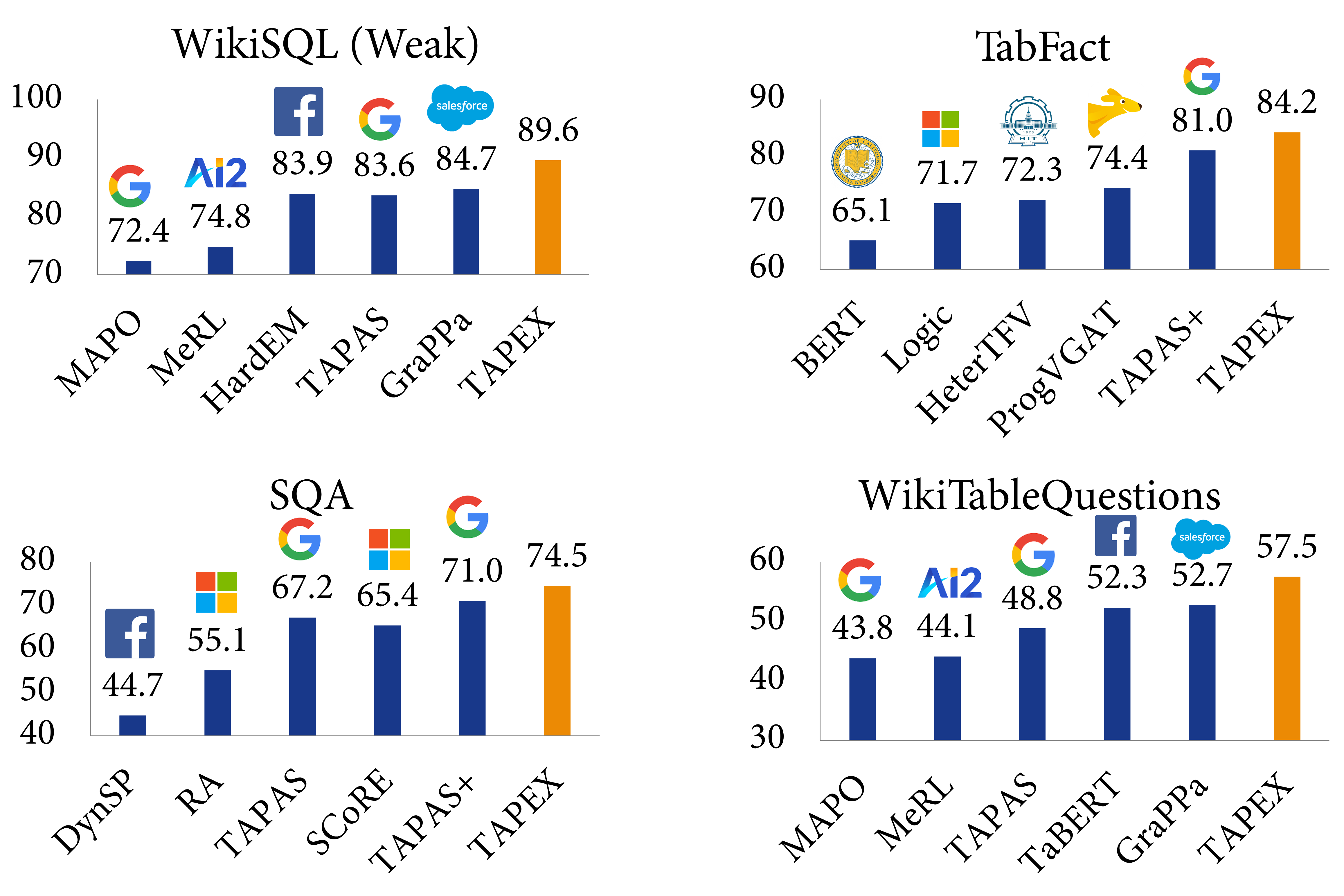 在這篇部落格中,我們介紹了 TAPEX,一種表格預訓練方法,其語料庫透過取樣 SQL 查詢及其執行結果自動合成。TAPEX 透過在一個多樣化、大規模且高質量的合成語料庫上學習一個神經 SQL 執行器,解決了表格預訓練中的資料稀缺挑戰。在四個下游資料集上的實驗結果表明,TAPEX 的效能大幅優於以往的表格預訓練方法,並且預訓練效率更高。